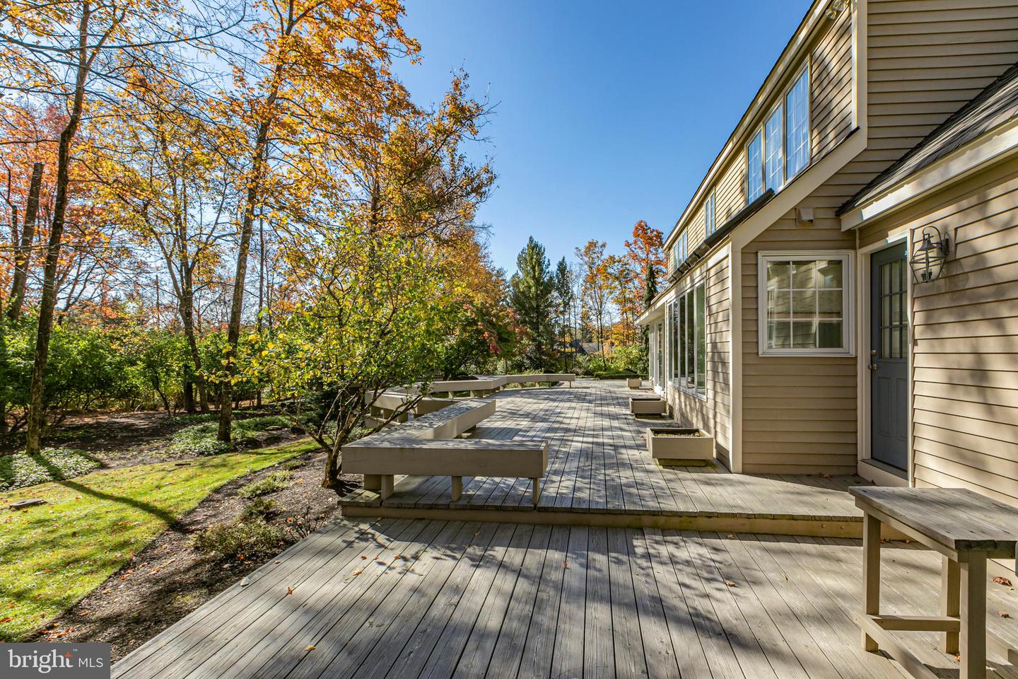 Set behind a private gated entrance, a bluestone courtyard, and stone garden walls, this exquisite one-owner Princeton home offers that rare combination of timeless elegance and modern practicality. Built in 1986 and meticulously maintained, the focal point of its lush outdoor setting is a beautifully designed deck and pool area with a well-appointed pool house, complete with kitchen, bath, changing rooms and basement. Upon entering, the living room is distinguished by a beamed ceiling and multiple sliding glass doors that flood the space with light and invite seamless indoor-outdoor living. An adjoining sunroom offers a tranquil space to take it all in and the formal dining room brings everyone together. Throughout, the layout has been thoughtfully designed, with a library, a first-floor bedroom, and a full bath in their own wing. A cozy den off the kitchen is another intimate space, while the kitchen itself is a chef's delight featuring dual full-size Sub-Zeros, center island, breakfast seating, and an abundance of storage, including an adjoining walk-in pantry. Up a back staircase, a media room and three bedrooms are laid out to give the main suite privacy. With a large terrace overlooking the pool area, expansive closet storage, and a spa-like bathroom, homeowners are assured the ultimate in relaxation. A finished lower level provides ample space for games, hobbies, and a home gym. Glorious attention to detail extends throughout, with designer touches at every turn.